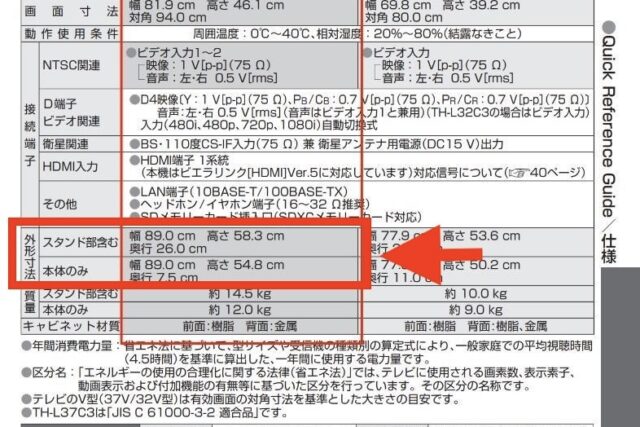 - 「テレビ ◯型、もしくは◯インチ」で検索